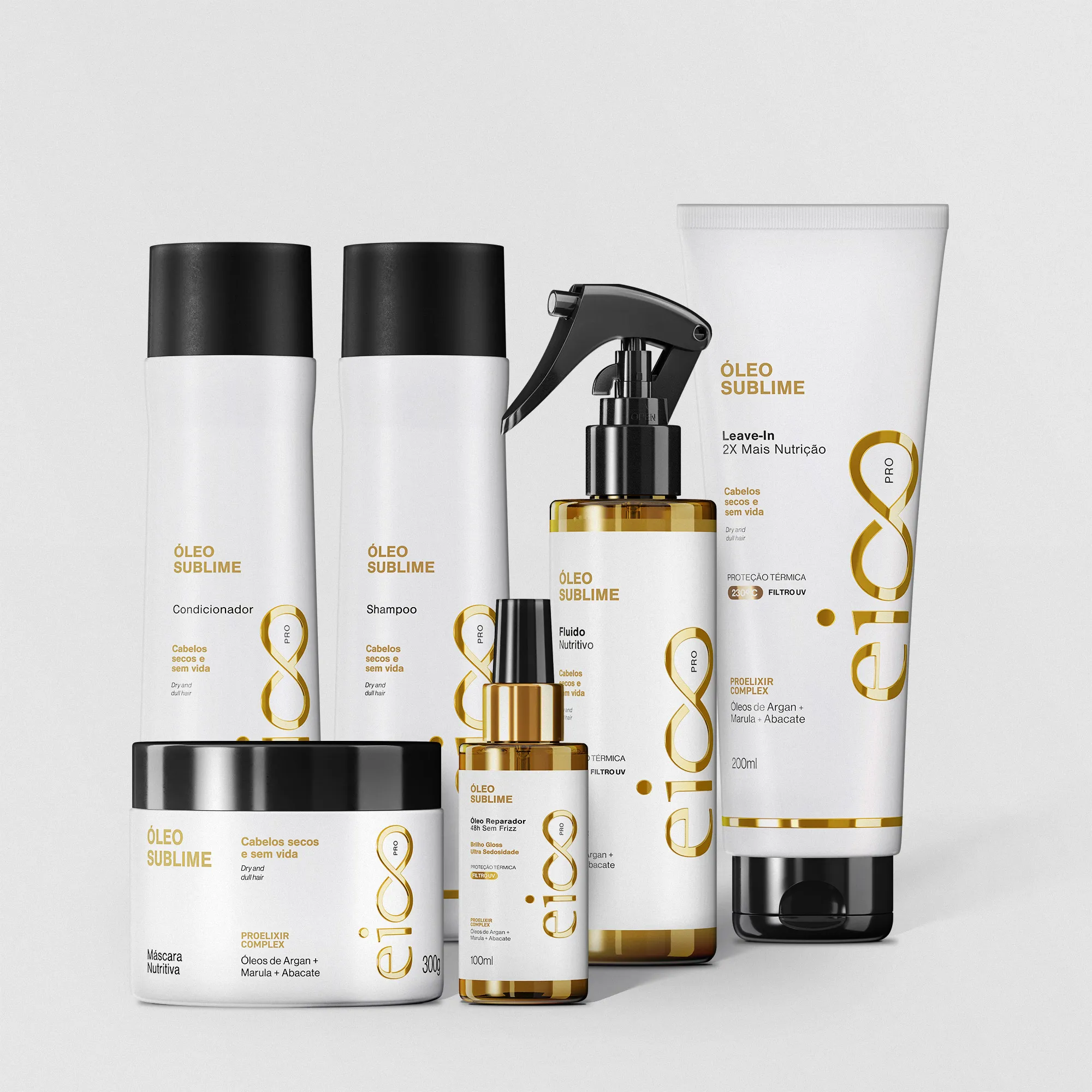 Enriquecido com Óleo de Argan, Óleo de Marula e Óleo de Abacate, este kit proporciona limpeza nutritiva, hidratação intensa, proteção térmica e disciplina dos fios.
