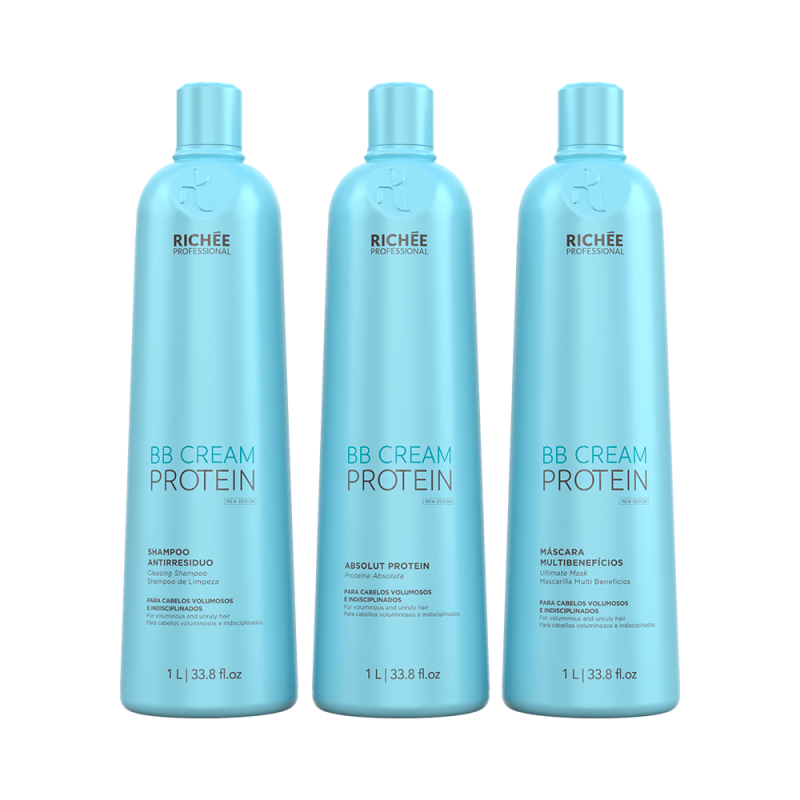 A linha BB Cream Protein de Richée Professional é um sistema de alinhamento capilar com resultado progressivo à medida que o tratamento é realizado seguidas vezes. A linha foi elaborada para promover um efeito liso com movimento natural e fios flexíveis, fáceis de modelar, além de vários benefícios para o tratamento dos cabelos. Fórmulas com aminoácidos, queratina e proteínas que proporcionam um cuidado completo. Pode ser usado como pós progressiva e pós alisamento, intensificando e prolongando o alisamento.